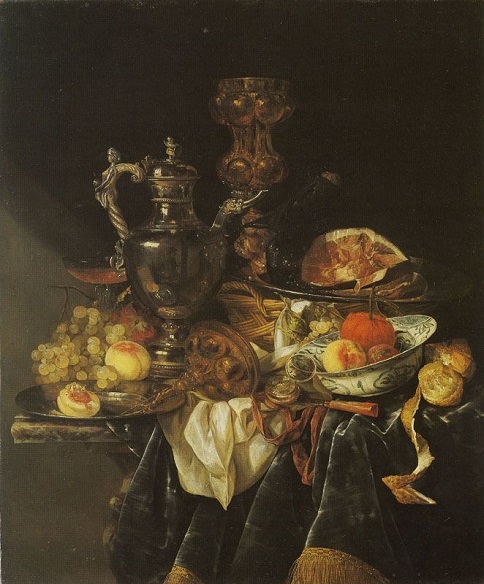 51- Willem Kalf, Nature morte avec fruits, verres et une coupe Ming, 1659, 58 x 51, Met